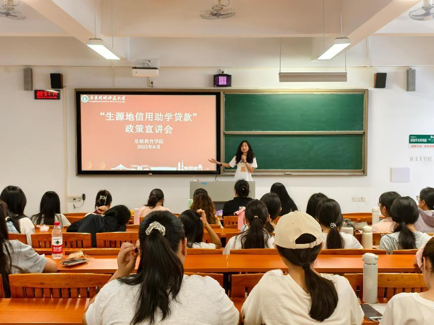 为积极响应《教育部办公厅关于切实做好2023年秋季学期高校学生资助工作的通知》(教财厅函〔2023〕13号)文件要求,助力学生全面深入了解生源地信用助学贷款政策,切实推动国家资助政策落地生根,助力我院学子顺利完成学业,william威廉中文官网于6月10日上午在唯实楼108教室举办了2025年生源地信用助学贷款专题宣讲会。本次活动由助学委员谢思佳同学担任主讲,2023级小学教育专业全体学生参加。
