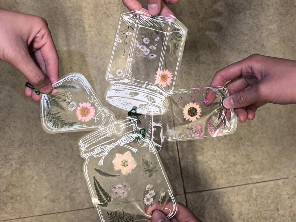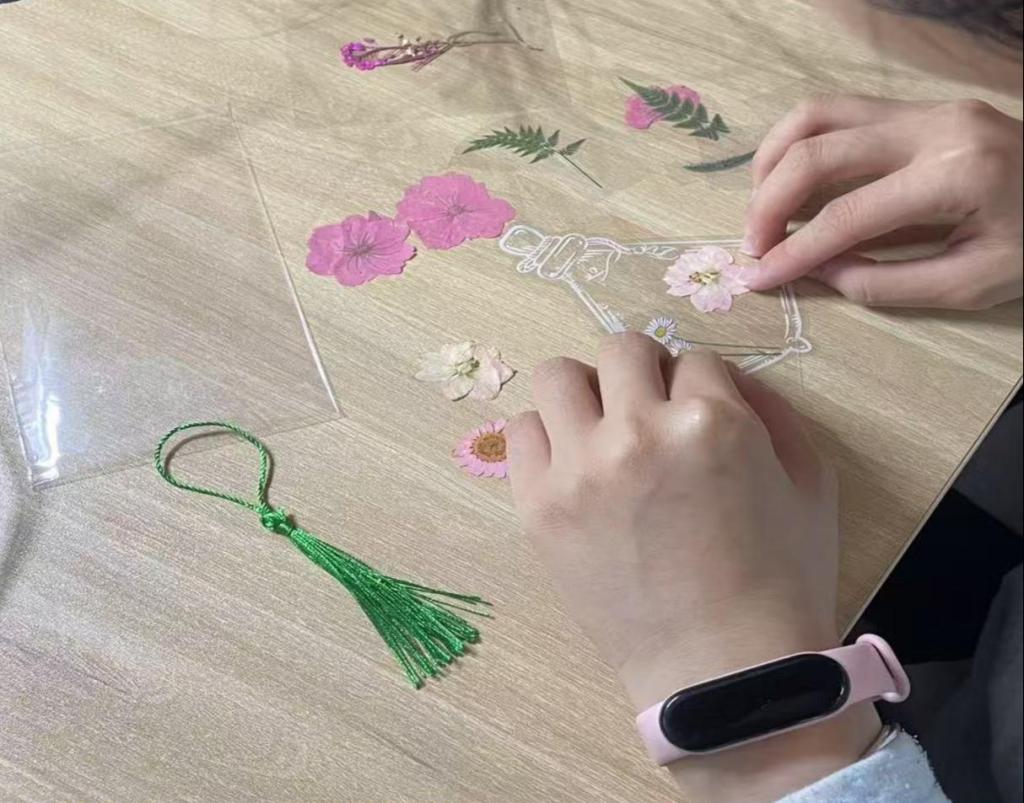 活动创新采用“寻访校园+手工创作”的体验形式,鼓励学生以宿舍为单位深入探索广师大校园的各个角落,采集具有春日特征的花草标本,经过动手压花处理后,制作成蕴含生命意象的创意书签。这种将自然元素转化为永恒载体的创作方式,不仅让春日的绚烂凝于方寸之间,更在实践中深化了同学们对生命的认知和感受。