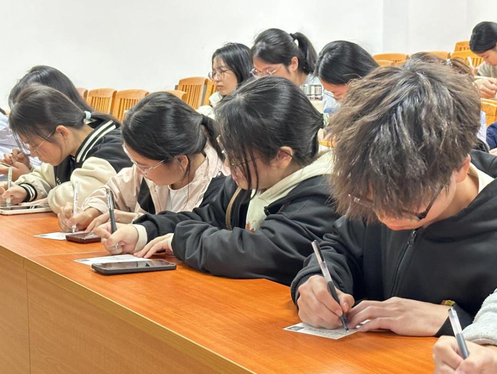 排练结束后,团建活动正式拉开帷幕。活动以“和声共筑,梦想起航”为主题,设有“数字3的拍手游戏”“歌曲接龙”“Emoji猜歌名”及“写我所想”明信片交换等环节。拍手游戏考验反应力,增进成员间默契;歌曲接龙展现音乐素养与协作;Emoji猜歌名激发创新思维;明信片交换环节,成员们写下祝福,投入箱中然后随机拿取,收到匿名祝福的成员们脸上洋溢着惊喜与感动。