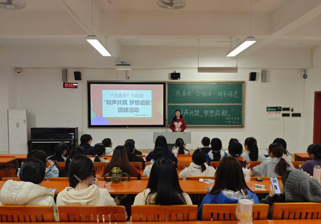 近日,“我喜欢”合唱团在唯实楼423室举办团建活动,此次活动回顾了合唱团成立一年来的成长历程,且以丰富多彩的游戏互动,增进了成员之间的友谊。