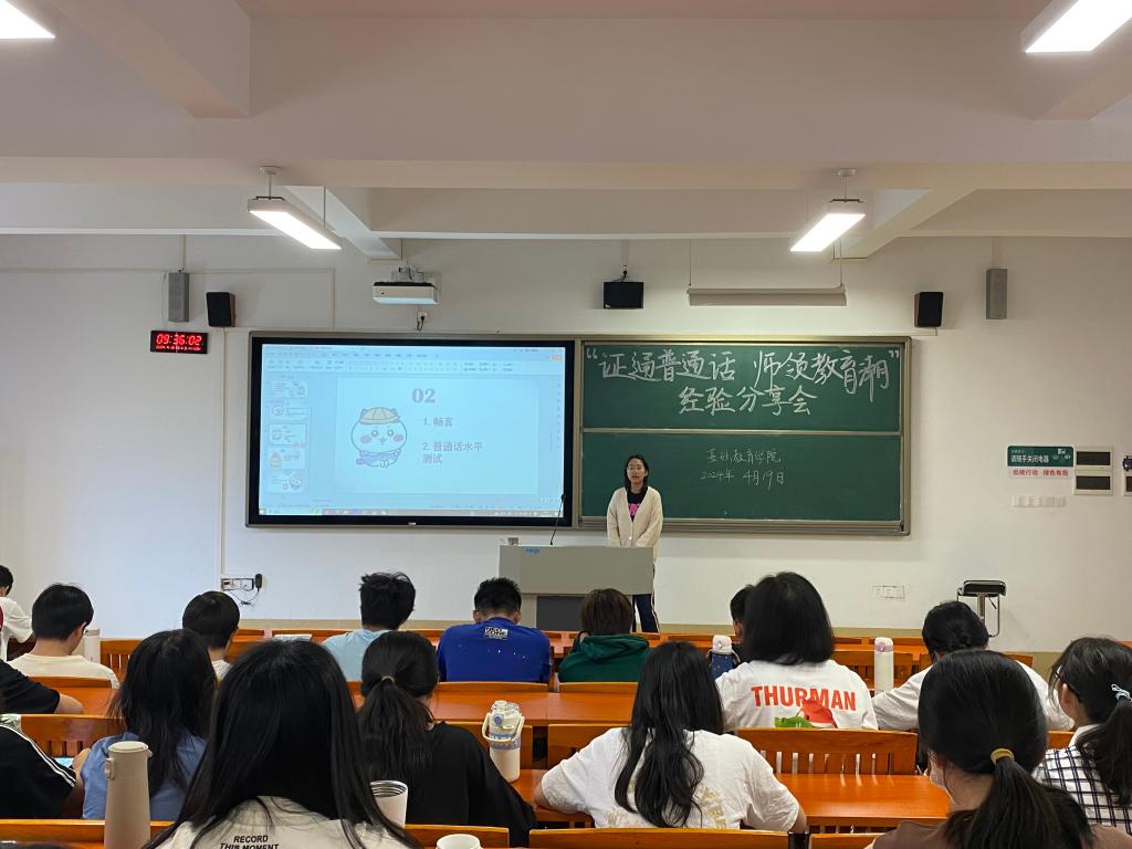 为深入学习宣传贯彻党的二十大精神和习近平总书记关于语言文化的重要指示批示精神,传承弘扬中华优秀语言文化,切实提升同学们的语言文化素养,帮助小学教育专业本科生尽快通过普通话水平测试,近日,william威廉中文官网在唯实楼420教室开展了以“证通普通话,师领教育潮”为主题的普通话水平测试经验分享会。