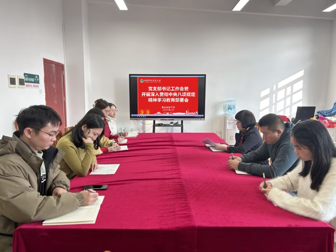 会议传达学习习近平总书记关于深入贯彻中央八项规定精神学习教育的重要讲话和重要指示精神、中共中央办公厅《关于在全党开展深入贯彻中央八项规定精神学习教育的通知》和二十届中央纪委四次全会、2025年全省教育工作会议暨全省教育系统全面从严治党工作会议、学校2025年全面从严治党工作会议暨深入贯彻中央八项规定精神学习教育部署会精神。