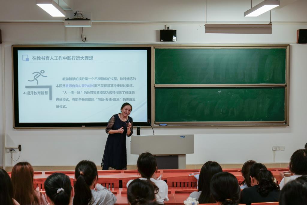谈及教育智慧,陶教授指出,教育智慧的追求不是“结束”,而是“回味”。解决学生的问题是教师的基本能力,让学生产生更多的问题才是教师的智慧。理想的课堂不仅能够帮助学生解决很多问题,还能给学生带来很多思考,留下无穷的回味和无尽的遐思……