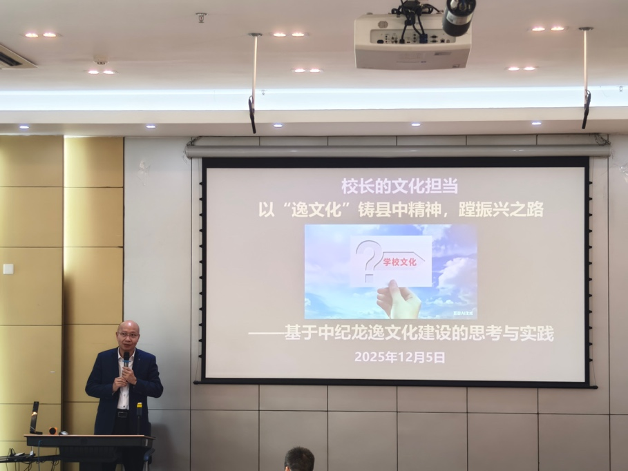 中山纪念中学教育集团龙门县高级中学赵新华校长以“校长的文化担当——基于‘中纪龙’逸文化建设的思考与实践”为题,分享了其带领薄弱县中实现蜕变的文化兴校路径。他深入剖析了学校托管初期面临的信心缺失、资源壁垒、学童流失等核心痛点,系统阐释了如何依托中山精神与集团化办学优势,构建以“逸文化”为核心的学校精神内核,并通过教研矩阵、航灯工程、逸卡工程等一系列创新机制,激发师生内生活力,显著提升教学质量与社会认可度。