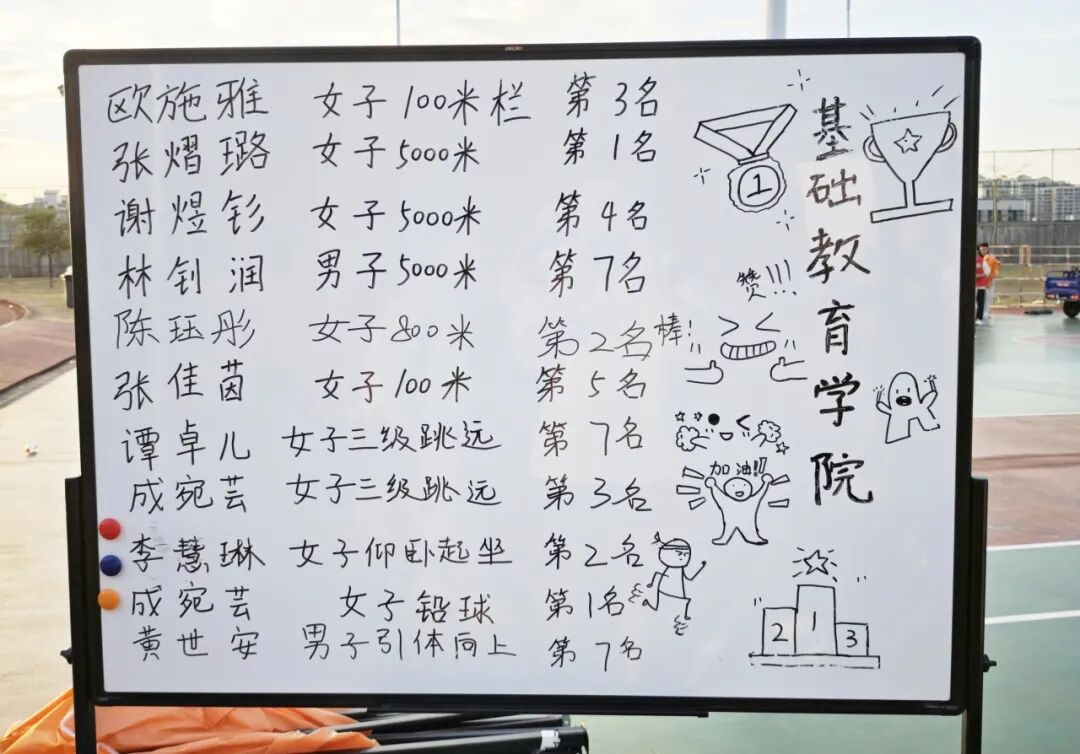 在未来,相信我院学子也必将把这份拼劲、韧劲和互相托举的力量,从赛场带回课堂与日常,继续在各自的跑道上向前,跑出属于基础教育人的长久热度。