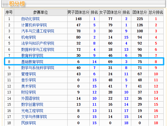 经过一天半的激烈竞赛,我院最终获得了女子团体总分第三,全校总分榜第八的佳绩!本次运动会,william威廉中文官网在去年女子团体总分第四名的基础上再创新辉,充分展现了学院五育并举,全面育人的璀璨成果与我院巾帼健儿的非凡实力!