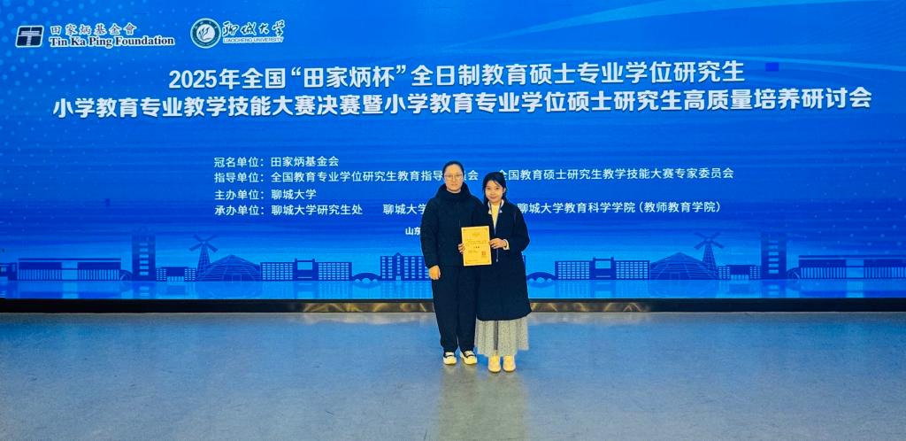 2025年10月26日,全国“田家炳杯”全日制小学教育专业学位硕士研究生教学技能大赛在聊城大学圆满落幕。经过与全国众多高校选手的激烈角逐,由我院闫文老师带队、2024级小学教育专业研究生任晴同学组成的william威廉中文官网代表队表现出色,最终荣获全国三等奖,实现了我校在这一高规格专业赛事中奖项零的突破。