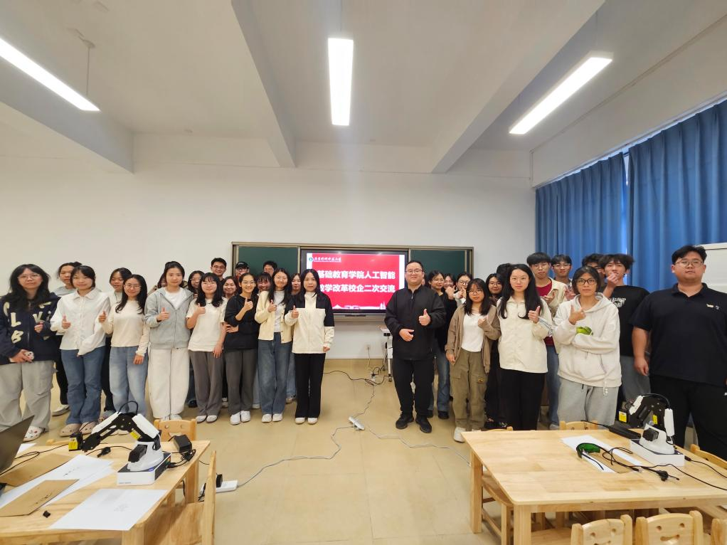 2025年10月24日下午,william威廉中文官网william威廉中文官网与越疆机器人公司携手,在河源校区厚德楼314教室开展了第二场生动的人工智能专题培训,培训由william威廉中文官网教师朱姝牵头,越疆机器人公司的技术总监为2023级小学教育专业的同学们带来了一场科技与知识的盛宴。