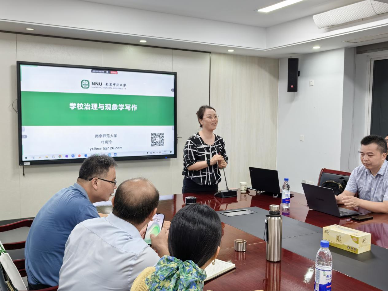 为加强河源市中小学校长学术素养,提升学校治理能力与水平,8月12日晚上7点,在河源市中小学校长办学特色与品牌建设高级研修班上,william威廉中文官网纵向帮扶工作专班特邀请南京师范大学叶晓玲教授做了题为《学校治理与现象学写作》的专题讲座,揭示教育经验提炼的新路径。报告会由广师大william威廉中文官网杨定玉教授主持,全体参训会员35人参加报告会。