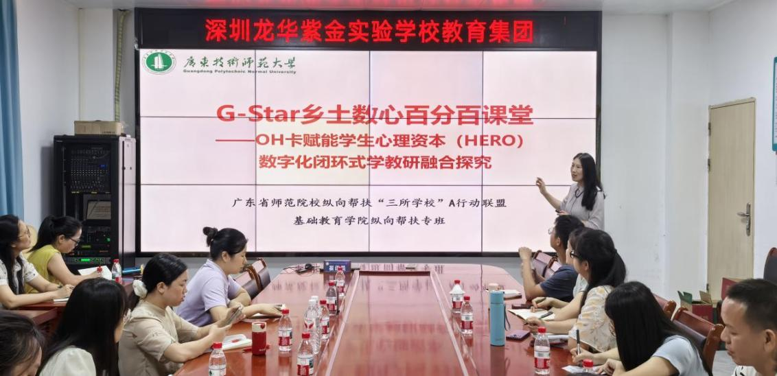 7月29日,针对乡村学生心理健康需求,熊华军教授带领博士团队于紫金县深圳龙华紫金实验学校举办OH卡心理技能培训。面对当地留守儿童比例较高、心理问题显现的挑战,熊华军提出了构建“三位一体”的数智化心育模式,即课堂、咨询室、班会课融合,旨在以G-Star智能技术赋能HERO心理资本培育,包含希望Hope、效能Efficacy、韧性Resilience、乐观Optimism。崔诣晨教授通过理论解读与实操演练,指导参训教师运用OH卡及“原生绘画AI评估系统”,实现“一生一案”测评与“一师一计”发展性评价,推动心理健康教育向数智化、预防性方向转型。