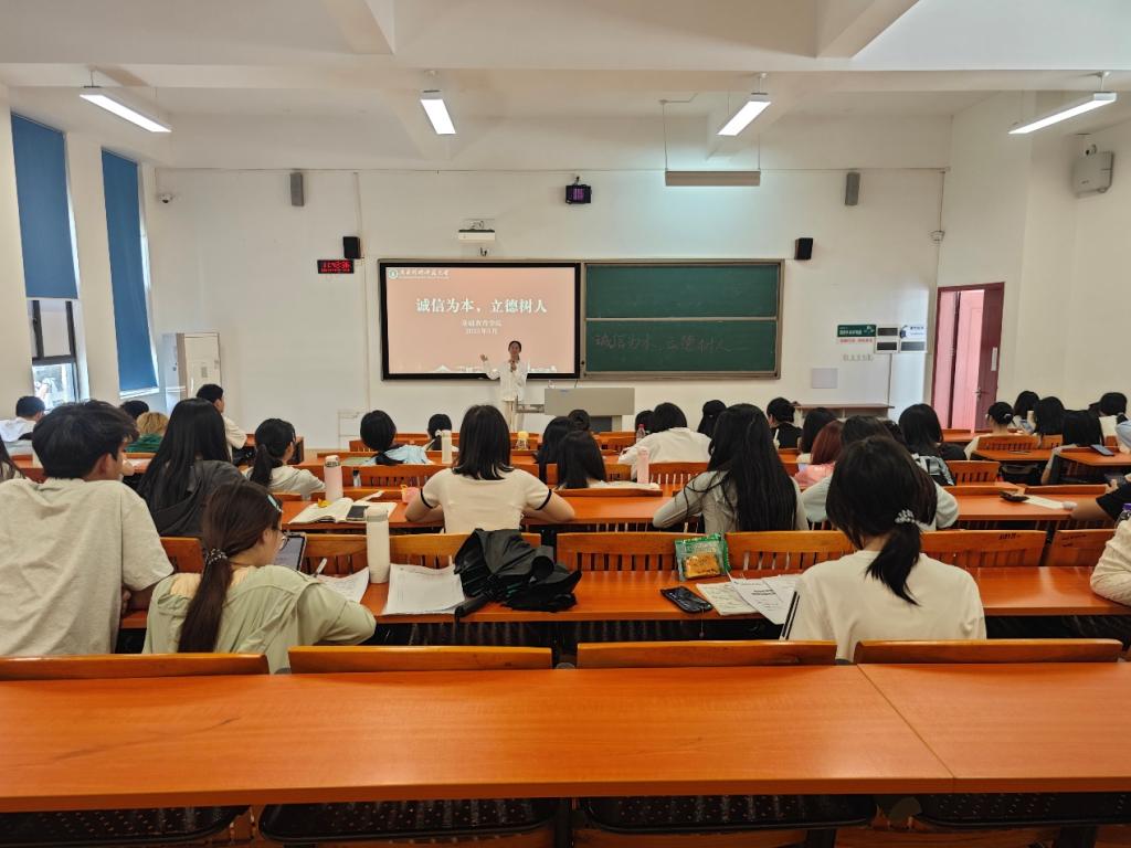 班会上,宣讲团成员从中华优秀传统文化中的诚信理念出发,结合《论语》《孟子》等经典著作,深入浅出地阐释了诚信对于个人成长和社会发展的重要意义。当古圣先贤的诚信箴言穿越时空回响,当生动的诚信故事化作精神火炬传递,现场学子沉浸其中,深刻体悟着“诚于中,形于外”的千年道德回响。