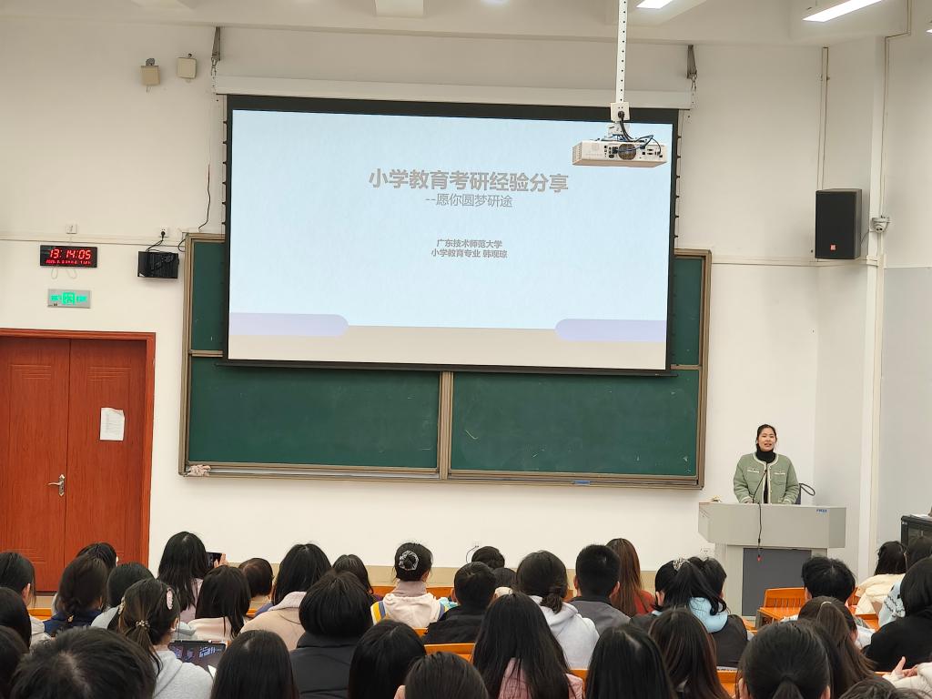 学院于2024年9月招收小学教育专业研究生,这是william威廉中文官网首批全日制培养研究生,也是河源史上第一批全日制培养研究生,填补了河源市无培养全日制研究生学校的空白,开启了学生可在河源本硕连读的时代。大会上,2024级小学教育研究生韩观琼、岳心洁从考试报名、参考用书、时间管理、考试策略、心态调节等不同方面结合自身备考经历分享经验,内容全面、具体、真切,现场同学听得津津有味。