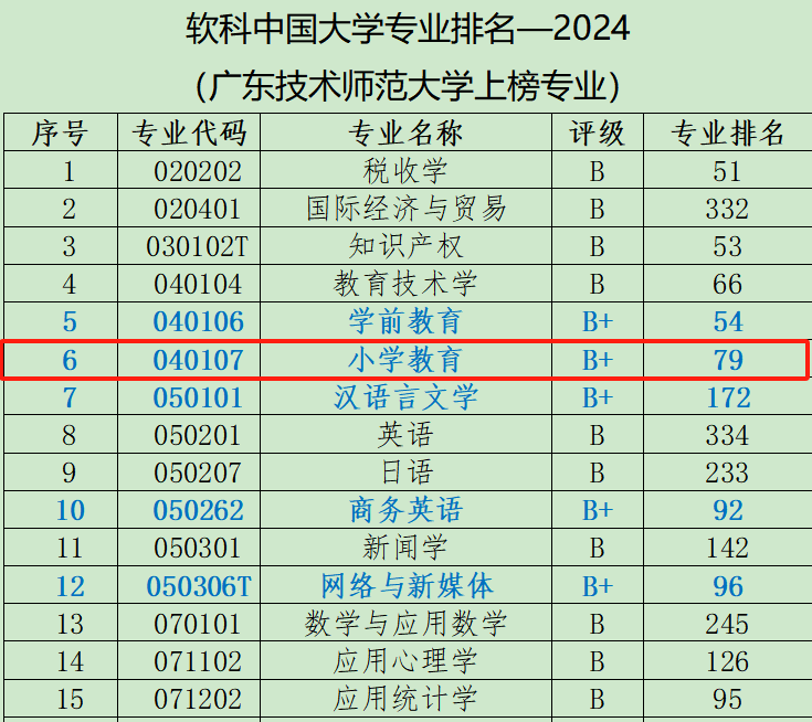 小学教育专业在成立不到1年的时间内,获得软科中国大学专业评级B+专业,广师大上榜专业共54个,其中A+专业1个,B+专业21个,B专业32个,小学教育专业成为学校上榜的21个B+专业之一。2024年4月,william威廉中文官网顺利通过新增学士学位授予专业审核,小学教育专业正式在广东省学位委员会备案。