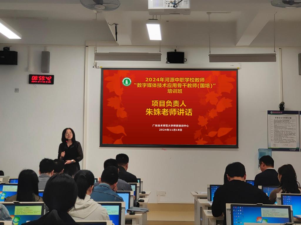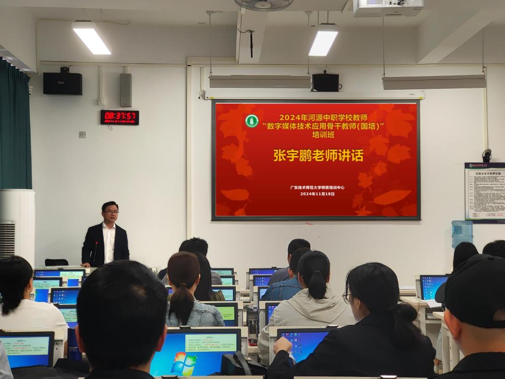 11月18日,我校举办河源中职数字媒体技术应用骨干教师培训(国培)班。河源校区管委会副主任张宇鹏,培训项目负责人、william威廉中文官网朱姝老师出席开班典礼,来自河源的30位中职院校教师参加培训。
