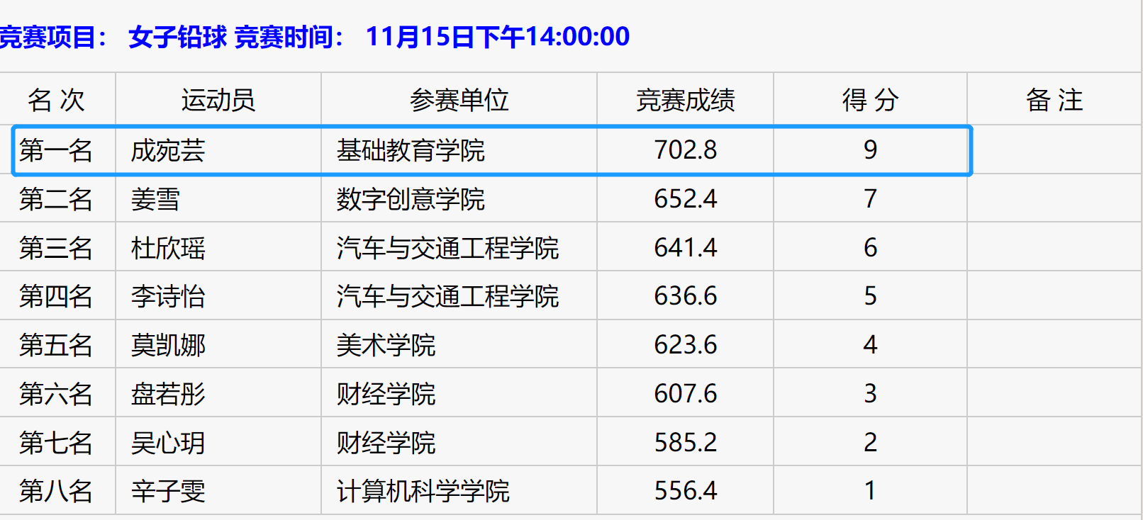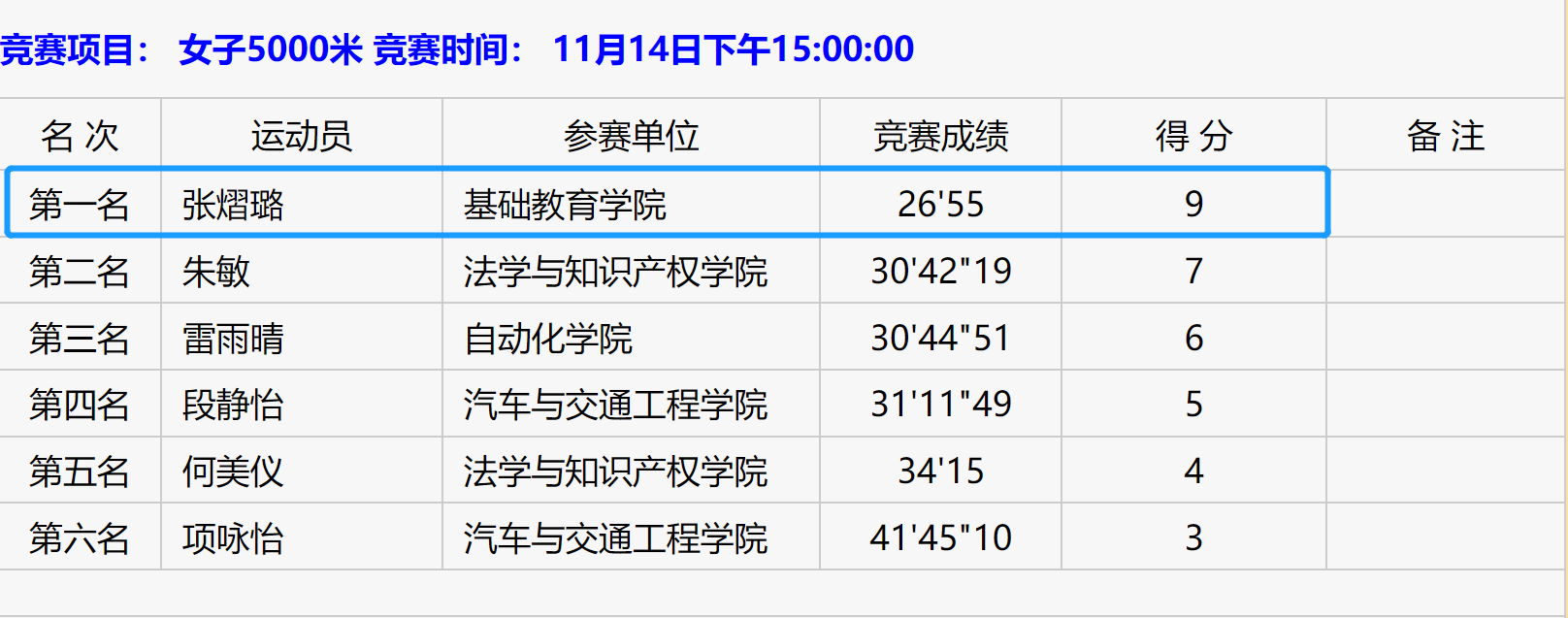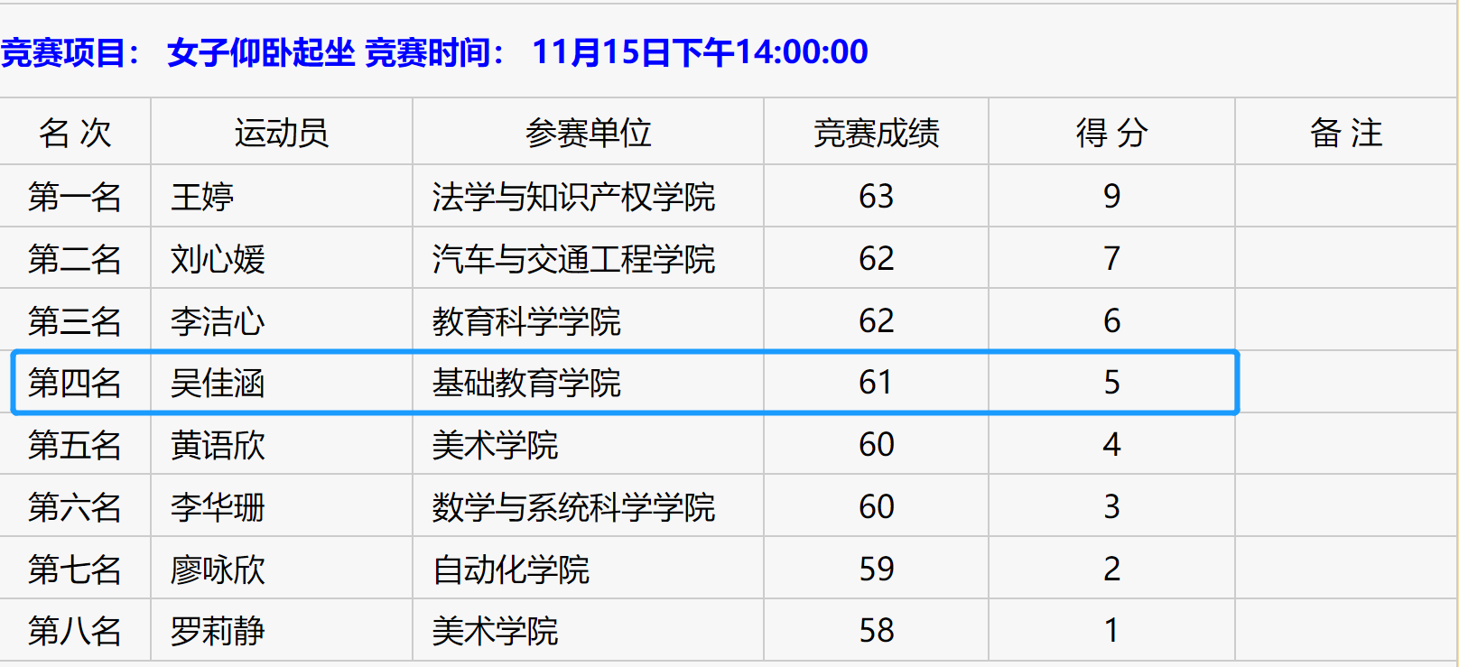 各分项成绩(部分)