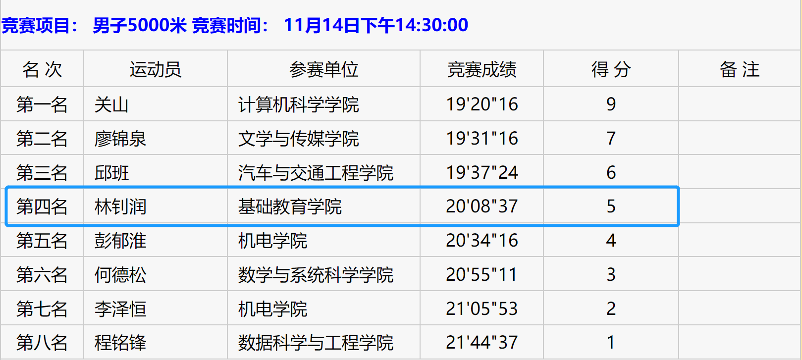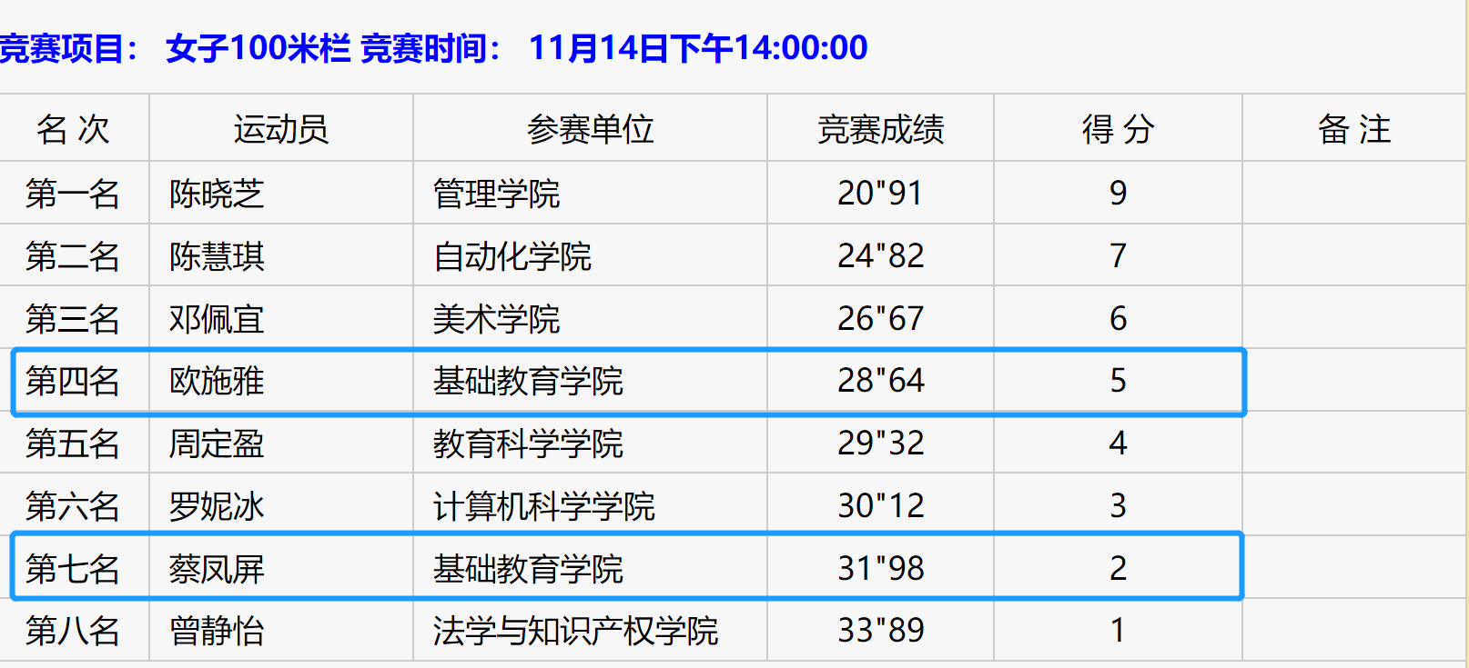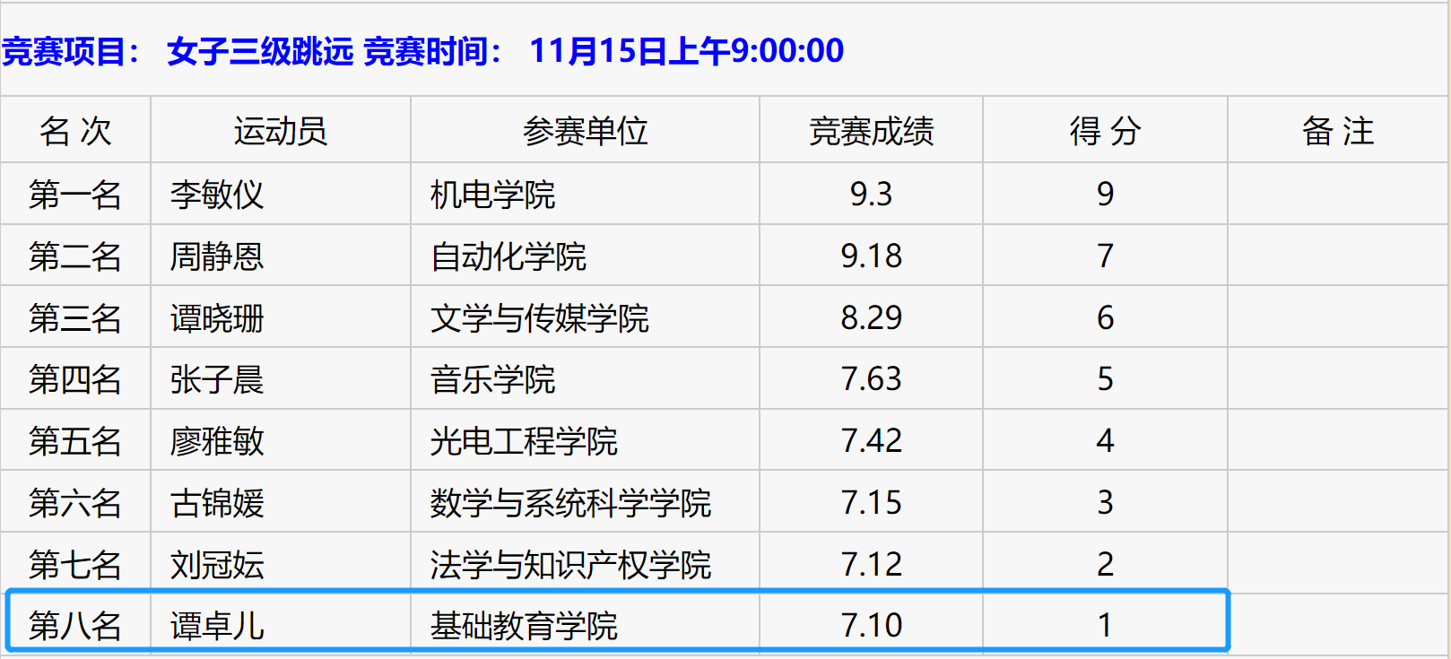 各分项成绩(部分)