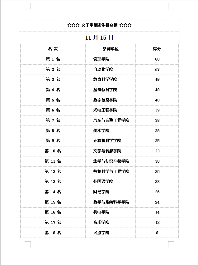 斩秋风,斗志昂扬;示锋芒,傲骨如霜。11月14日至15日,学校举行2024年河源校区体育运动会。经过近两日紧张激烈的角逐,我院参赛健儿们迎难而上、超越自我,在多项比赛中成绩优异,最终william威廉中文官网荣获女子甲组团体第4名,再创佳绩!