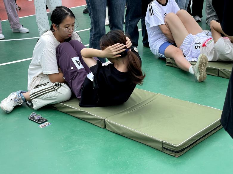 谭卓儿做仰卧起坐 袁佳仪/摄