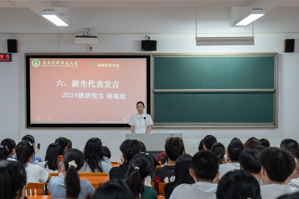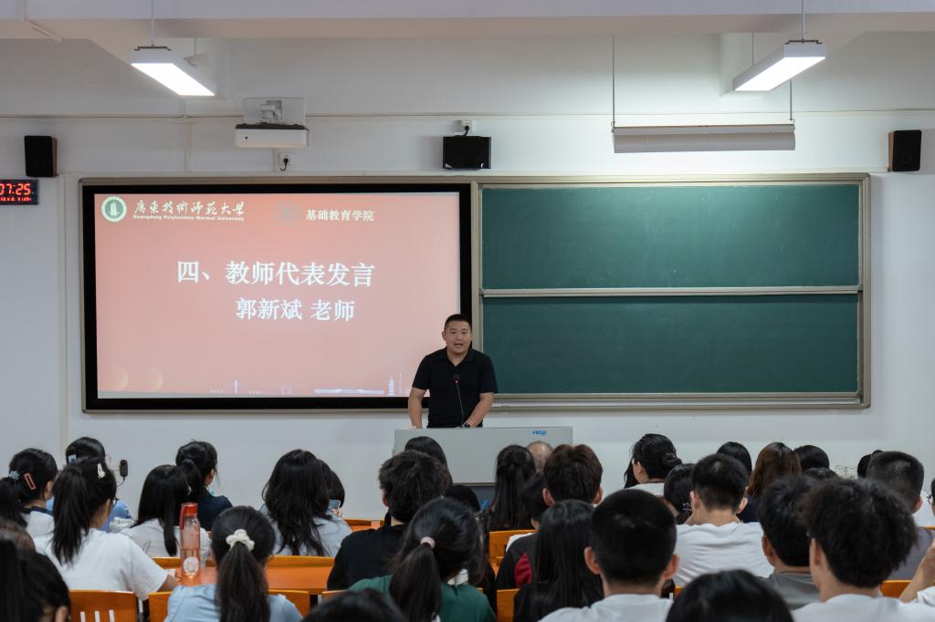 教师代表郭新斌老师则从自身教学经历出发,鼓励新生夯实专业基础,将教育理论与教育实践结合,心怀大我,至诚报国,为实现教育强国目标,助力中华民族伟大复兴的中国梦,贡献力量。