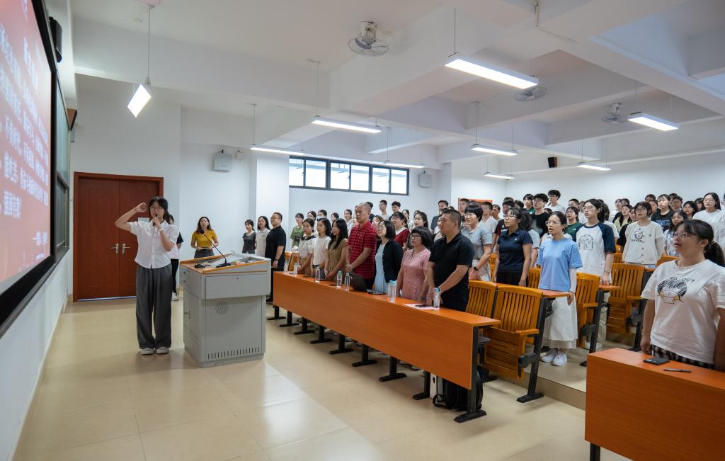 “传承红色基因,弘扬校训精神,树立高远志向,勇担强国重任,勤奋学习,全面发展,不负韶华,不负时代,不负祖国,争做有理想、敢担当、能吃苦、肯奋斗的新时代好青年!请党放心,强国有我!”学院2024级全体新生在24小学教育2班姚逸雯同学的领誓下共同宣誓,铿锵有力的青春誓言响彻整个会场,一份爱校荣校的归属感与荣誉感已驻留在2024级新生的心间。