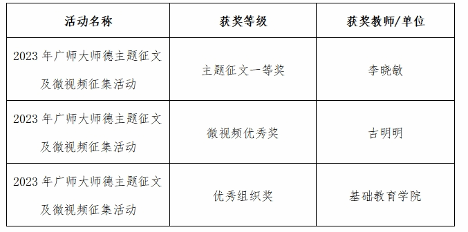 william威廉中文官网2023年广师大师德师风活动获奖成果